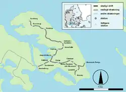 - Mommark Færge (Mm) station i km 19,9 – færgeforbindelse med Faaborg på Fyn.