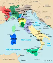 I 1419 købte Grimaldi-familien Monaco fra Aragoniens Krone, og blev dermed de officielle og ubestridte herskere af Monacos Klippe kaldet Herrer (Seigneurs) af Monaco. I 1612 begyndte Honoré 2. at omtale sig selv som Fyrste (Prince) af Monaco.[18] I 1630'erne søgte han fransk beskyttelse mod Spanien, og i 1642 blev han modtaget i Ludvig 13.s hof som "Duc et Pair Etranger".[19] Fyrsterne af Monaco blev vasaler for den franske konge, mens de samtidig opretholdt deres suverænitet som fyrster.[lower-alpha 3] Selvom de efterfølgende fyrster og deres familier tilbragte det meste af deres liv i Paris, og giftede sig med adelige fra både Frankrig og Italien, så er Huset Grimaldi italiensk. Fyrstedømmet fortsatte med at eksistere som et protektorat for Frankrig, indtil den franske revolution.[20]