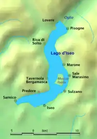 Der er flere mindre byer på øen; hovedbyen, hvor kommunens rådhus er beliggende, hedder Siviano. Ved kysten på øens sydlige ende ligger de to små byer, Sensòle og Peschiera Maraglio, hvor der er overnatningsmuligheder. På øens nordøstlige hjørne ligger den lille by, Carzano, en meget velholdt gammel landsby. Carzano er kendt for sin fest hvert femte år, Festa Santa Croce, hvor byen bliver udsmykket med over 100.000 papirblomster. Denne tradition går tilbage til middelalderen og blev efter sigende stiftet af moren til en dreng, der blev helbredt for pest. Som tak til Gud lod hun fremstille et blomsterhav.