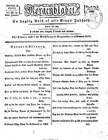 Morgenbladet blev grundlagt i 1819[1] af bogtrykker Niels Wulfsberg. Avisen var Norges første dagligt omdelte avis; den ugentligt omdelte Adresseavisen blev dog grundlagt tidligere. I lang tid var Morgenbladet også den norske avis med det største oplag. Det oprindelige format var 20 x 20 cm, mindre enn dagens A4-format. Sidetallet var fire. Formatet blev beholdt i 17 år. Avisens gennembrud kom i maj 1819 under en brand på de vigtige trælastlagre i Christiania. Branden varede i flere døgn, og medførte et større for nyhedsopdateringer. I 1821 blev Wulfsberg avisens første stortingskorrespondent. Referater fra Stortinget var noget helt nyt i norske aviser, og Wulfsbergs indsats førte til en forøget leserskare under stortingssessionen. Samme år trak Wulfsberg sig dog som redaktør, og trykkeren Rasmus Hviid overtog avisen sammen med sin velhavende forlovede, Else Marie Ring. Sammen undgik de, at avisen gik konkurs. Avisen tog afstand fra unionen med Sverige; skrev endog en beklagelse af, at Stortinget ikke fejrede grundlovsdagen 17. maj 1829; og dristede sig til at sætte den højst kontroversielle forfatterinde Germaine de Staël på tryk. Hendes forfatterskab var ellers forbudt i det meste av Europa; men Morgenbladet stolede på accepten fra forfatterindens gamle ven Karl Johan. [2] Adolf Bredo Stabell, chefredaktør fra 1831 til 1857, fortsatte linjen, der gjorde Morgenbladet til en vigtig oppositionskraft, både i politik og litteratur. Blandt avisens skribenter i denne periode var forfatter Henrik Wergeland. [3] Efter 13. marts 1841 var Morgenbladet dog lukket land for Wergeland. Hans digt Mig selv, med åbningslinjen "Jeg i slet lune, Morgenblad?", blev sendt i retur efter en bitter fejde med redaktør Stabell. I 1849 skrev Friedrich Engels dog i Karl Marx’ avis, Neue Rheinische Gazette, at Morgenbladet var "et dejligt lille blad". [2]