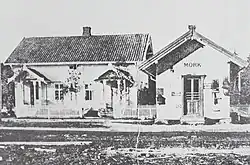 Stationsbygningen blev opført i 1896 efter tegninger af Günther Schüssler. I 1989 blev den flyttet til Fossum Station og taget i brug af veteranbanen mellem Sørumsand og Fossum. Toiletbygningen fra Mork er også flyttet til Fossum. Sporene i Mork er taget op.