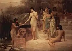 ![]() Moses bliver fundet af Faraos datter, maleri af Edwin Long.  | |