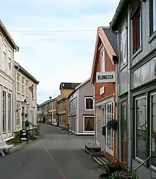 Byen har den ældste træhusbebyggelse i Nordnorge; i Sjøgata ligger små træhuse og -broer langs floden Vefsna. Centrum af byen er formet som en planmæssig kvadratur. Bemærkelsesværdig er Dolstad Kirke, en ottekantet trækirke fra 1735, og Fru Haugans Hotel fra 1794, det ældste hotel i Nordnorge.