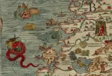 Moskstraumen på Olaus Magnus' Carta Marina fra 1539.