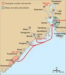 I 1500-tallet voksede interessen for udvinding af malm i Europa, og grundlaget for en moderne bjergvidenskab blev lagt ved tyskeren Georgius Agricola.[2] I Danmark-Norge blev der i den norske del af riget blandt andet fundet forekomster af jernmalm. I det sydlige Norge var de rigeste jernfund i Arendalsfeltet ved Arendal, men grundet behov for træ til produktion af trækul for masovnene og fossekraft for drift af masovnenes blæsebælge blev jernværker ofte anlagt andre steder end ved malmminerne.[note 1] Ved Moss var der god tilgang på kraft fra Mossefossen, det var meget skov, og beliggenheden ved fjorden gjorde indskibning af råvarer og udskibning af færdige produkter enkel.