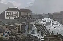 Ved store arbejder i 1750 fik værket en stor vandrende, som gik over kongevejen, den foregående havde gået under vejen. Vandrenden var 8–9 fod bred, 6 fod dyb og faldhøjden var 48 fod.[19] Vandmangel blev der efter et mindre problem end det havde været i værkets første år, men under en usædvanlig tørke i 1795 begyndte man at sprænge i Krapfos og bygge dæmninger oven for, hvilket bestyrer Lars Semb mente burde have været gjort længe før. På selve jernværket (ikke indbefattet møller og savværker) var det omkring 1810 totalt 24 vandhjul, en del af dem var ret store.[20]