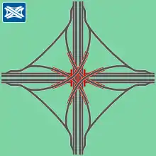 Et kløverbladsanlæg giver trafikanterne mulighed for at fortsætte ad de 3 øvrige retninger end den, de er kommet ad. Trafikken, der ønsker at fortsætte 90 grader til venstre, skal i stedet køre 270-grader til højre i et kløverblad. I Danmark har vi to motorvejskryds, der er udformet som kløverbladsanlæg: Motorvejskryds Århus Vest og Motorvejskryds Odense.