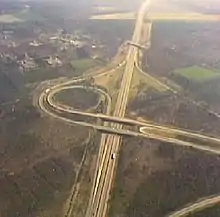 Herudover er der nogle motorvejskryds med to fortsættende motorveje, hvor det kunne være lavet kløverbladsanlæg, men hvor nogle af forbindelserne ikke er etableret:
