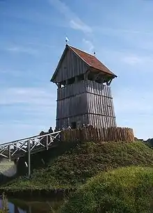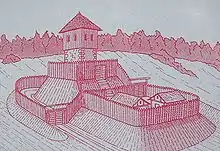 - Motte and Bailey Castle, illustrativ tegning af borg af typen motte-and-bailey