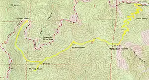 Den 85 km lange spejder-hike-rute the Silver Moccasin Trail, forbinder denne top med Mount Baden-Powell (højeste punkt på ruten), Throop Peak og Mount Hawkins.