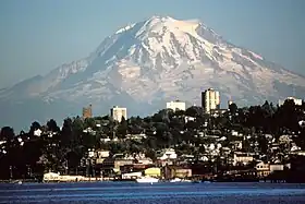 Mount Rainier er en aktiv vulkan 87 km SØ for Seattle. Vulkanen ses over byen fra søsiden. Den har ikke været i udbrud siden 1894, men regnes for at være aktiv, og der har været mindre aktivitet i slutningen af 1900-tallet. Det tidligste udbrud har formodentlig fundet sted for omkring 840.000 år siden. Selve vulkanens kegle er mere end 500.000 år gammel. Vulkanen er den højeste vulkan i USA bortset fra Alaska og er en del af bjergkæden Cascades, hvor den med sine 4.392 m er det højeste punkt.