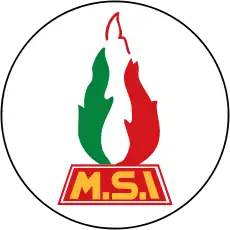 Partiets logo er en flamme, der svæver over en kasse med de tre bogstaver M.S.I. Ifølge en tradition repræsenterer logoet en flamme, der svæver over Mussolinis grav. I denne tradition betyder M.S.I.: Mussolini Sei Immortale (Mussolini er udødelig).