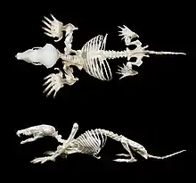 På forfoden, hånden, er kløerne meget kraftige, lange og fladtrykte. Selve håndfladen er stor og bred, hvilket dels skyldes, at de fem fingre næsten til spidsen er omgivet af en fælles hud og dels at der på indersiden af hånden findes en stor seglformet seneknogle. Hånden er desuden drejet så den første finger vender nedad, og forlemmerne kan ikke anvendes i normal gangstilling. Der findes således kun trædepuder på bagpoterne og i dyrets spor viser forpoterne sig kun som en række mærker efter kløerne. For øvrigt gælder det, at under løb sættes forpoten to gange i jorden for hver gang bagpoten sættes en gang. For bedre at kunne grave er forlemmerne forskudt fremefter, således at hænderne i hvilestilling er placeret ved siden af dyrets hoved. Dette er muliggjort ved, at skulderbladene er omdannet til lange, slanke knogler, der strækker sig fra brystkassen langs halshvirvlerne helt til kraniets bagkant. Overarmsknoglerne er derimod korte og kvadratiske. Hertil er fæstet kraftige muskler, der fører til brystbenet, hvor de er fæstet til en høj benkam, hvilket ellers kun ses hos flyvende dyr som fugle og flagermus. Foden er ikke ligesom hånden specielt udviklet til at grave med. Den har dog langs inderranden en seneknogle, der kan minde om en kloløs sjette tå. De fem tæer på foden har krumme kloformede negle og på undersiden små trædepuder.[2]
