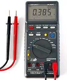 - Termometer: Nogle multimetre har et stik for tilslutning af en temperaturprobe og kan derigennem måle temperaturer.