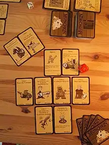 | Munchkin | Originalen | 166 | Fantasy | Parodi på alle Dungeons & Dragons-lignende rollespil og anden fantasy. Spillets racer er Dwarf (dværge), Elf (elver) og Halfling (hobbit) og klasserne er Cleric (præst), Thief (tyv), Warrior (kriger) og Wizard (troldmand). |