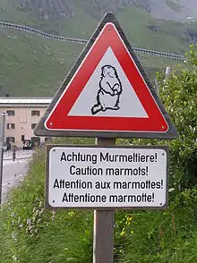 Østrigsk skilt med opfordring til at passe på murmeldyr.