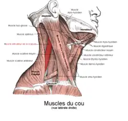 Musklerne i nakken. (Levator scapula er synlig centralt til venstre.)