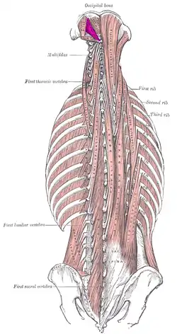 ![]() Posterior major's lokation i nakken, markeret med lyserødt. | |