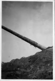 Som en form for krigsbytte, lå et af de fire 110 tons og 19 meter lange tyske 38 cm skibskanonrør, der skulle til Tirpitz-stillingen ved Blåvand, i Tøjhusmuseets gård.