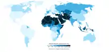 Islam spredte sig efter Muhammeds levetid hurtigt gennem større dele af Asien, Afrika og Europa og udgør i dag verdens næststørste religion med mere end 1,5 milliarder tilhængere (sammenlagt omtrent en fjerdedel (23,2 % (2010)) af verdens befolkning).[3] Demografisk er islam som religion i dag udbredt over hele verden (er en verdensreligion) og udgør majoriteten af befolkningen i 49 lande (ud af i alt 193 anerkendte lande i verden) og er en betydelig minoritet i adskillige andre.[4] Flere bevægelser (bl.a. Bahai, Ahmadiyya og Sikhisme[5]) er helt eller delvis inspireret af islams lære.