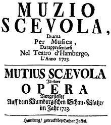 | Muzio Scevola (Mucius Scaevola) | Altkastrat | Francesco Bernardi ("Senesino") |