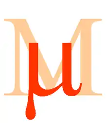 µ bliver også brugt som SI-præfikset mikro- (i matematisk sammenhæng en milliontedel), men regnes, af historiske årsager, som et selvstændig tegn i unicode, U+00B5 (Micro sign).