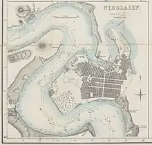 I den russisk-tyrkiske krig fra 1787 til 1792 erobrede Rusland den nordvestlige kyst af Sortehavet, som indtil da havde været under osmannisk overhøjhed. Allerede før Jassy-freden i 1792, der afsluttede krigen, grundlagde den russiske generalguvernør for guvernementet Novorossija, fyrst Grigorij Potemkin, i 1789 byen Nikolajev, først som et skibsværft kaldet "Det nye skibsværft ved Ingul floden". Potemkin underskrev ordren om at opføre værftet den 27. august 1789, der anses for at være byens fødselsdato. Værftet opgave var at foretage reparation af flådens skibe i Den russisk-tyrkiske krig (1787-1792). Senere navngav Potemkin værftet Nikolajev for at fejre datoen, hvor Otjakov blev indtaget af russiske tropper under hans kommando, den 6. december 1788, tæt på Sankt Nikolausdagen den 19. december i den Julianske kalender.