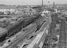 Under kamphandlingerne ved tyskernes angreb på den Røde Hær og ved byens tilbageerobring fra tyskerne, led den omfattende skade, primært de to daværende skibsværfter. Umiddelbart efter at byen blev generobret af Den Røde Hær i foråret 1944, blev tyske, ungarske og rumænske krigsfanger og sovjetiske tvangsarbejdere brugt til at genopbygge byen, primært de to skibsværfter. Den store krigsfangelejr 126 med to afdelinger med op til 10.000 fanger af forskellig nationalitet lå i nærheden af de to skibsværfter og eksisterede indtil maj 1949.