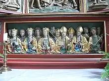 | Sankt Elegius | ? | Bispeklædt og med kalk, smedeværktøj eller hesteben | ? |