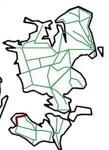 - Købelev station i km 9,5 med læssespor til roetog, fjernet 1956.