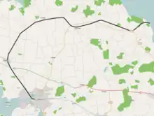 - Torrig station i km 24,1 med ekstra læssespor fra 1917, svinefold og privat varehus – forbindelse med Maribo-Torrig Jernbane, som krævede ekstra spor, remise og drejeskive.