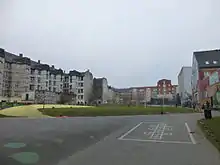 - Nr. 26 har en flot varm rødmalet gavl som giver en stærk kontrast til grønne træer og blå himmel. Bemærk hvordan den funktionalistiske murstensbyggeri mod Hamletgade/Mimersgade trapper ned i højden og indretter sig efter Kingos kirken.