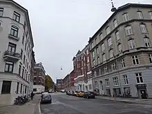 - Nr. 11: Der er et meget fint kvindehoved af granit over indgangsdøren. Hun er en del af en sjældent moderne udsmykning, da det meste pynt ellers plejer at være inspireret af antikken med søjler, løvehoveder og blomsterranker som man også kunne finde i gammel græsk og romersk arkitektur.