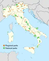 I Italien er der 24 Nationalparker. I alt er 1,5 millioner hektar under beskyttelse, hvilket udgør 5 procent af landets areal. Indtil august 2012 var der kun 22 områder der af IUCN var beskyttet under Kategori II (Nationalpark).[1]