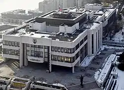 Parlamentsbygningen er på slotsbakken ved Bratislava Slot ved Alexander Dubček-torvet.