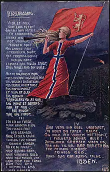 Danmark har to nationalsange:[1] Der er et yndigt land udgivet i 1823 af Adam Gottlob Oehlenschläger [2] og Kong Christian stod ved højen Mast skrevet i 1779 af Johannes Ewald. Heraf tjener Kong Christian desuden som kongesang.[1]