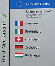 Skilt som fortæller om venskabsbyer i Neckarsulm