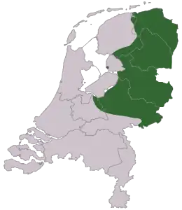 Den nedersaksiske dialekter i Nederlandene er ikke en sproglig enhed; de hører endda til to forskellige afdelinger af det nederlandsk-nedersaksiske sprog (groningensk er en nord-nedersaksisk dialekt, de andre dialekter falder ind under vest-nedersaksisk). De vigtigste ligheder ligger i ordforrådet: Udbredelsen af nye ord slutter i dag normalt ved grænserne, og igennem den indflydelse, som medierne og styrelserne har på indførelsen og udbredelsen af ordene. Undtagelser er steder, der udgøres af internationalt prægede byområder: For eksempel har nederlandsk klart leksikalsk indflydelse på dialekten i Gronau.