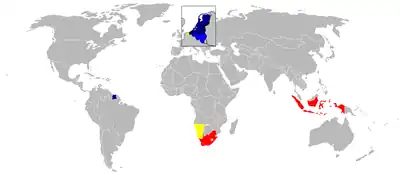 Medlemsland Land med speciale bånd med sprognævnet Andre områder hvor der tales nederlandsk (eller afrikaans)