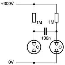 Her er et eksempel på at to komponenter (her glimlampe), som udviser negativ differentiel modstand, kan fungere som en astabil multivibrator. [19]
