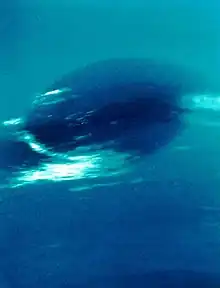 Da Voyager 2 fløj forbi i 1989, havde Neptun en stor mørk plet, et mørkt, ellipseformet område på størrelse med Jorden, der kunne sammenlignes med Jupiters store røde plet på den sydlige halvkugle.[8] "Den store mørke plet" er et anticyklonisk stormsystem, der spænder over 13.000 km × 6.600 km (8.100 mi × 4.100 mi)[10] Den 2. november 1994 så Hubble-rumteleskopet ikke den store mørke plet på planeten, men i 2018 blev der observeret en ny, mørk plet op i dens sted.[11]
