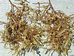 ![]() Sargassum-tang, der vokser i den neritiske zone, er mad og skjulested for småfisk. |