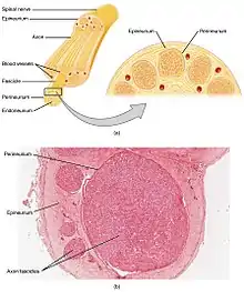 En nerve er et bundt af aksoner, omgivet af bindevæv i det perifere nervesystem. En nerve indeholder aksoner fra mange neuroner.[1]