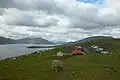 - Den gamle gård fra 1845 med det traditionelle færøske græstag, stalden i den ene ende, i midten røgstuen (roykstova) som arbejds- og sovested med køjer, jordgulv, det åbne ildsted (grúgva) og lyrehul (ljóari) som røgaftræk og lysindtag i taget, i den anden ende af huset er glasstuen (glasstova), med vinduer og bilæggerovn.