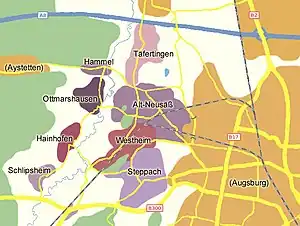 Neusäß består af otte bydele, der tidligere var selvstændige landsbyer: