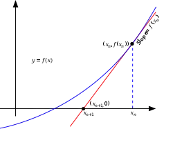 Den rekursive formel ser således ud, hvor f'(xn) angiver differentialkvotienten til den givne funktion:[1]