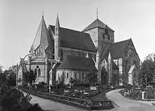 Ærkebispegården blev opført umiddelbart syd for kirken.