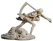 “Det er et uhyggeligt mandsansigt, fortrukket i vrede, en truende knyttet hånd løfter sig, og det ser ud som en frygtelig storm blæser. Den rusker i Tidens lange hår, og omkring ham bølger et slynget ornament, der kan minde om uvejrsskyer eller oprørte bølger. Skulpturen har et dekorativt præg med det slyngede art noveau-agtige ornament, der minder om figurerne fra 1890’erne.”