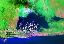Satellitbillede af Nokouésøen.
