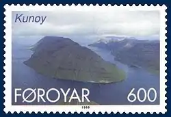 - Kunoy har fået sit navn efter det 820 m høje forbjerg Kunoyarnakkur på øens nordspids, som falder næsten lodret i Atlanterhavet. Derved regnes det blandt verdens højeste, mens Enniberg på naboøen Viðoy med 754 m lodret klippevæg er verdens højeste lodrette kap. Nordøst for Kunoy bygd ligger der en skov med forskellige træarter. Der er kun to bygder på Kunoy: Kunoy bygd på vestkysten, og Haraldssund på østkysten. Mellem de to er der en ca. 3 km lang tunnel, mens en dæmning forbinder Haraldsund med naboøen Borðoy, hvor Klaksvík ligger. En tredje bygd, Skarð, blev forladt efter juleaften 1913, da alle bygdens syv mænd omkom ved et skibsforlis (undtagen en 14-årig og en 70-årig). Símun av Skarði (1872-1942), en af bygdens sønner, boede i Tórshavn, da ulykken skete, og regnes blandt de mest betydningsfulde færøske pædagoger. Han har skrevet den færøske nationalhymne.